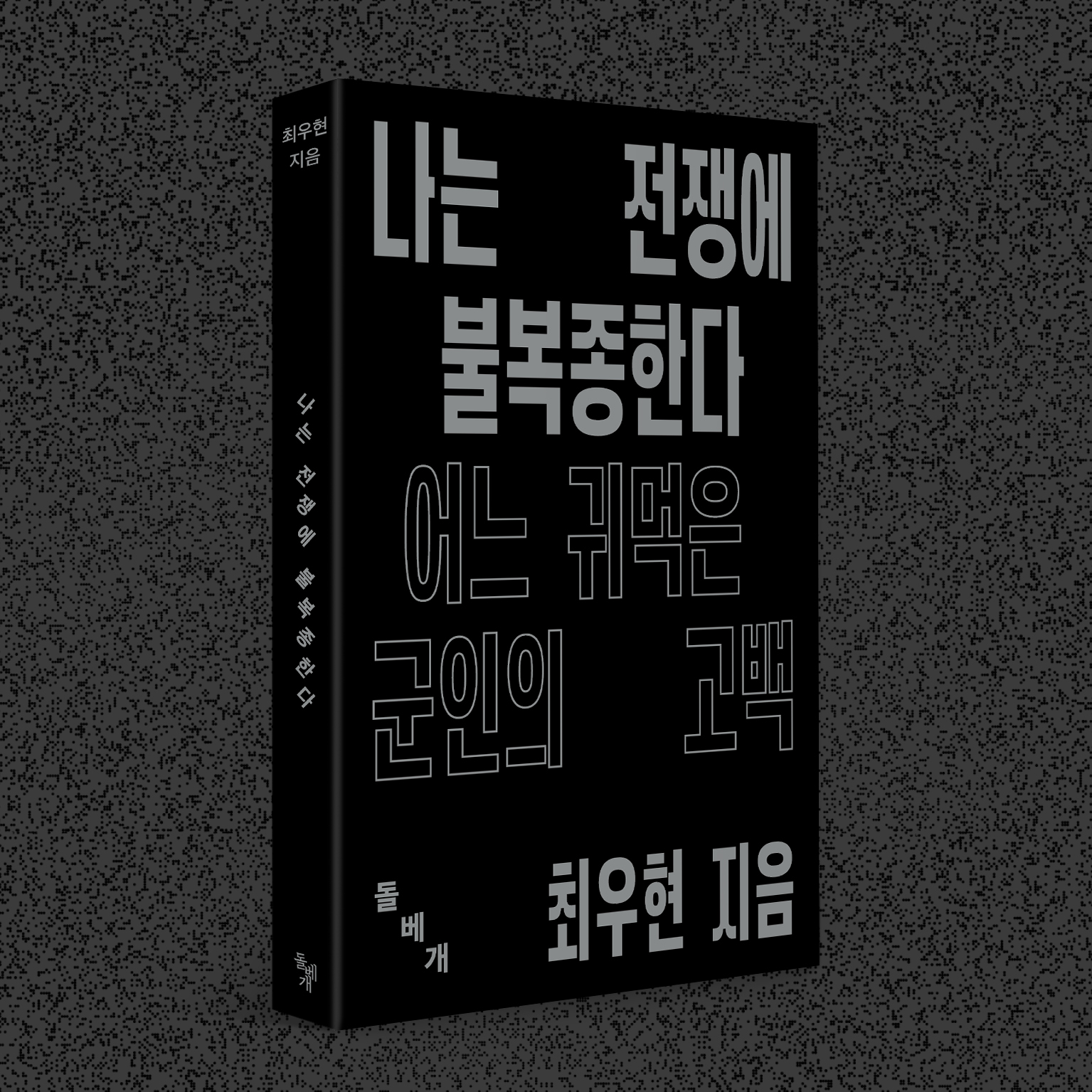 세계 곳곳에서 일어나고 있는 시위 장면들은 저에게 강한 인상을 주었고, 『나는 전쟁에 불복종한다』의 표지를 디자인할 때에도 영향을 주었습니다. 그래서 책 표지를 ‘메시지를 전달하는 하나의 피켓’으로 생각하고, 두 가지 방향으로 시안을 진행했습니다. 하나는 종이를 오려 쓴 글씨를 활용한 피켓처럼 디자인했고, 다른 하나는 길쭉한 네모 안에 꽉 찬 형태의 서체를 활용해 큼직하고 묵직한 분위기로 메시지를 전달했습니다.