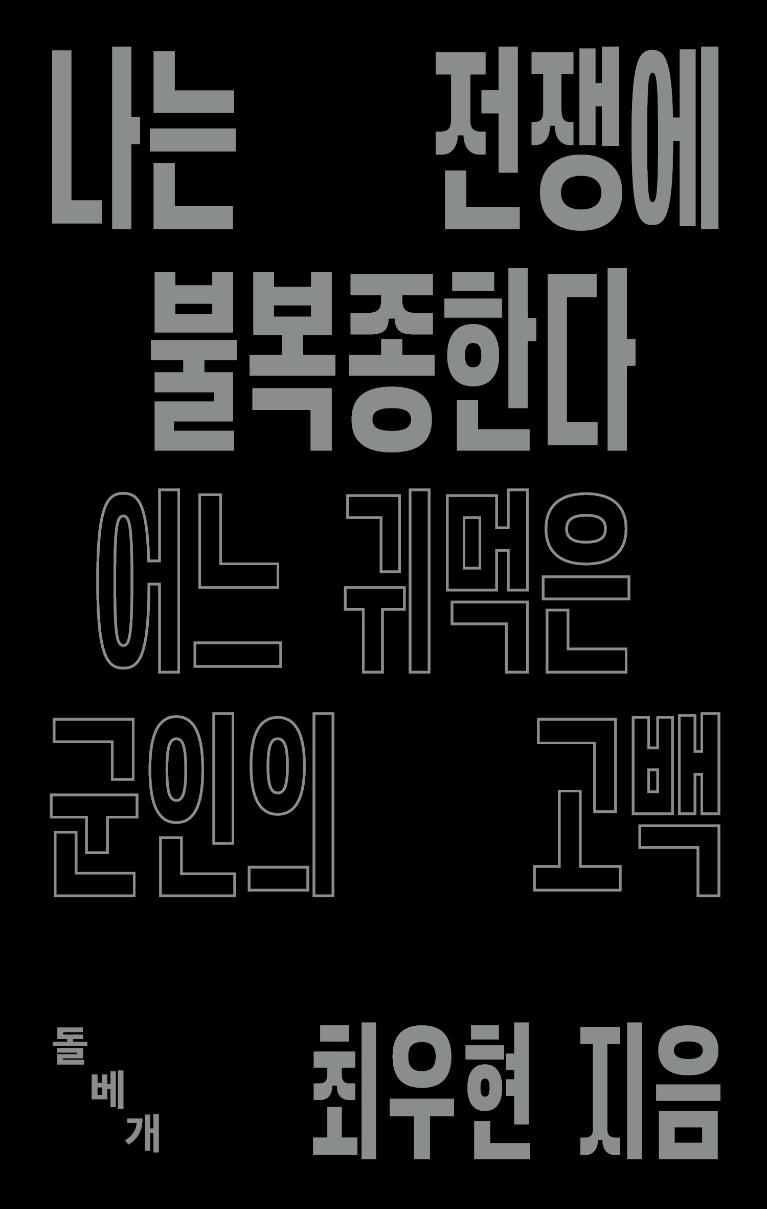 전쟁과 폭력에 반대해 온 연대 시민들께 바치고 싶어요. 그분들이 앞서 꾸준하게 ‘전쟁 불복종’의 목소리를 내 주신 덕분에 저 역시 뒤늦게나마 평화의 연대 속으로 돌아올 수 있었어요. 최근 매주 팔레스타인 평화를 위한 집회와 행사에 참석하고 있는데요. 광장의 제 목소리가 (혹은 이 책이), 과거의 저를 똑 닮은 ‘호전주의자’들에게 가닿기를 소망합니다.