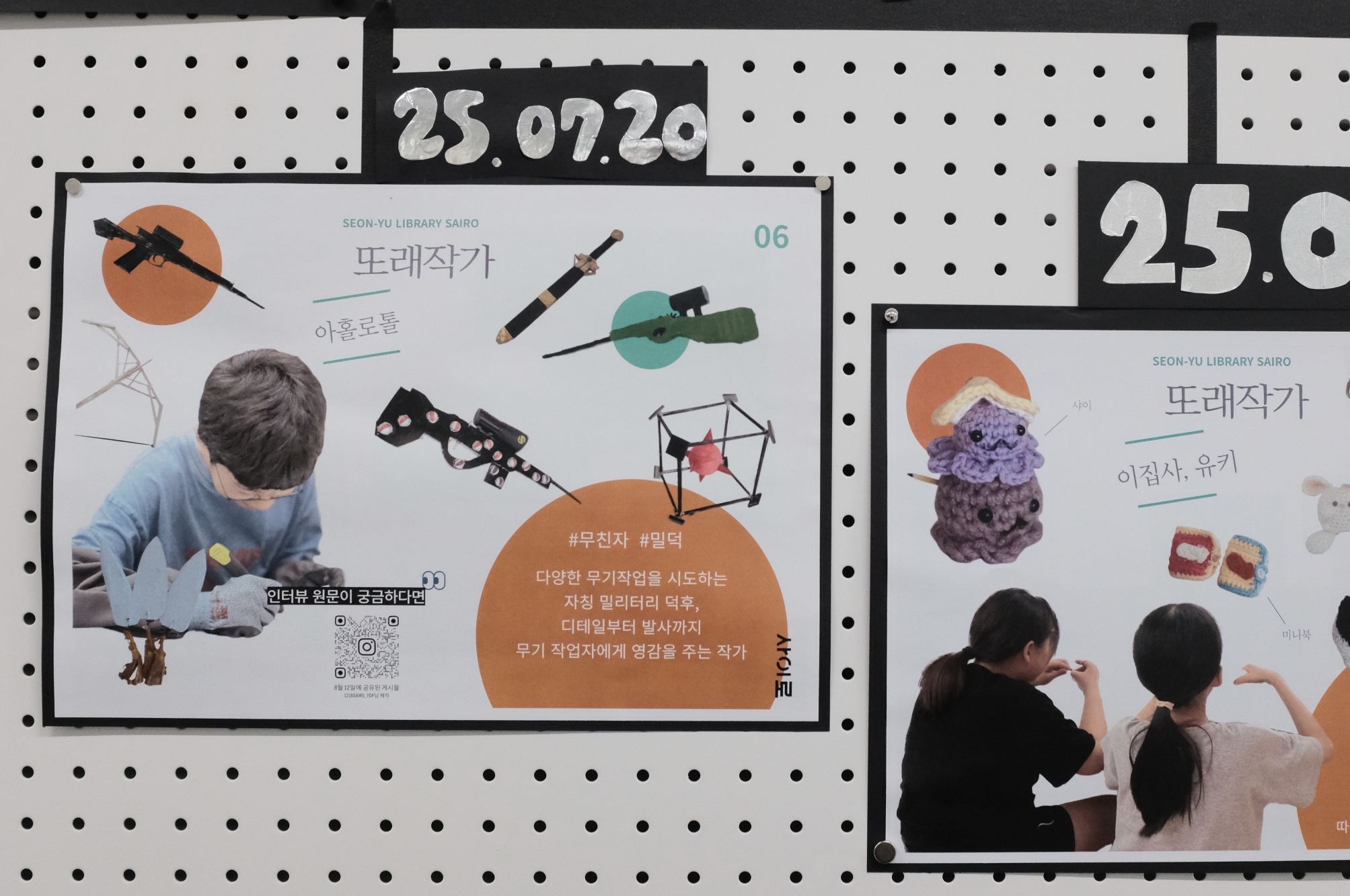 제가 특히 애정을 갖는 곳은 베이킹존이에요. 처음엔 낯설었지만 동아리 활동과 연습을 거치며 점점 재미를 느꼈어요. 시도와 실패가 자연스럽게 허용되는 곳이라, 낯선 경험을 통해 새로운 가능성을 발견할 수 있다는 점이 참 좋아요. 최근엔 『매일의 영감 수집』을 읽었어요. 일상 속 작은 아이디어를 발견하고 기록하는 과정이 인상 깊었습니다. 도서관을 운영할 때도 그런 감각이 중요하다고 생각해요. 손으로 만드는 책, 진(Zine) 작업에도 관심이 많습니다. ‘사이로’에서 활동하는 작가님들 중에서 언젠가 독립출판 작가가 나오길 기대하고 있어요.